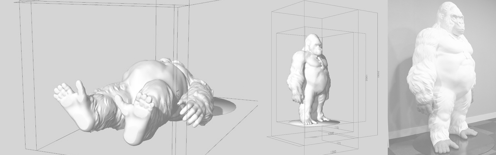 お客様のイラスト等の原稿をもとに3Dデータを作成し、3DプリンターやFRP等を使って、白色の大型フィギュアを造形します。