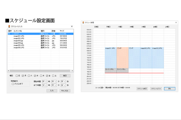 時間、曜日によってスケジュールで映像を切り替えることもできます。